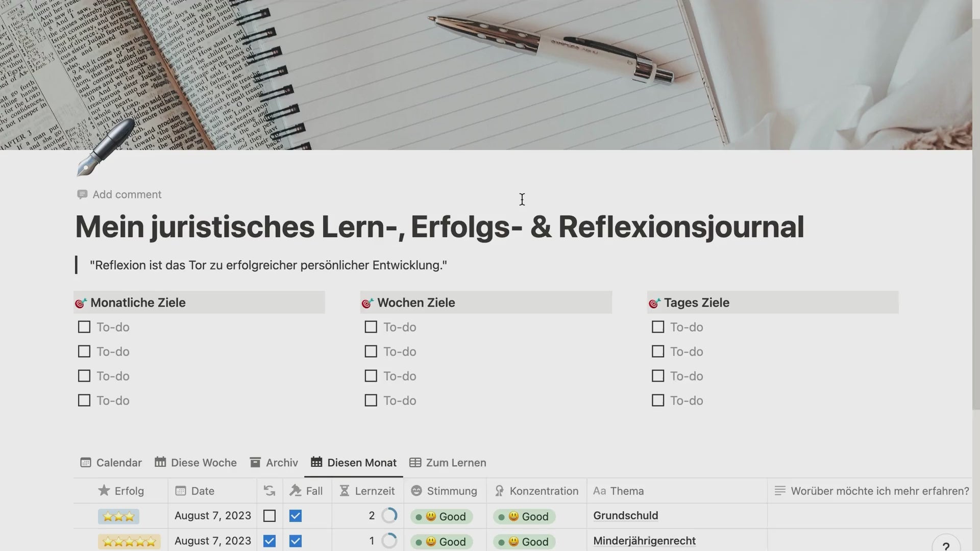 Juristisches Lern- und Reflexionsjournal
